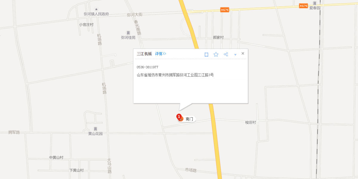 青州市三江機械有限公司坐落于中國北部的花木之鄉(xiāng)——山東省青州市,風(fēng)景優(yōu)美,交通便利,人杰地靈。